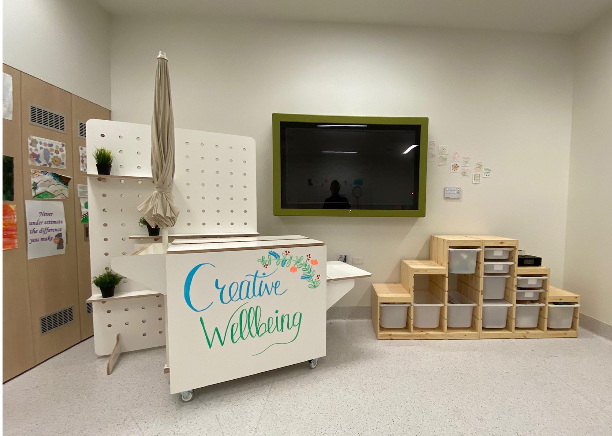 The benefits of art activities for physical and mental health are extensively documented in the fields of health and arts. The World Health Organisation (WHO) recognises that the arts can contribute to preventing illness; promoting healthy behaviour; managing medical conditions; and supporting clinical treatments. In this project designers, occupational therapists and mental health inpatients collaborated to co-create the Creative Wellbeing Program (CWP) an ‘arts-health practice’ initiative for mental health recovery. The program was developed through a collaborative platform that can be defined as a ‘lo-fi living lab’: a space similar to any living lab, but giving prominence to unsophisticated and improvised co-creation processes, based on DIY, hacking techniques and low-technologies used by occupational therapists and other health staff as part of their work. The program includes two main elements: a trolley system for delivering visual art activities; and a set of guidelines explaining how to facilitate those activities in ways that contribute to recovery. The combination of tools and guidelines offers allied health staff resources to run a program that is sustainable; helps them to gain conceptual and practical creative skills; and engages service users in meaningful activities that promote mental health recovery.