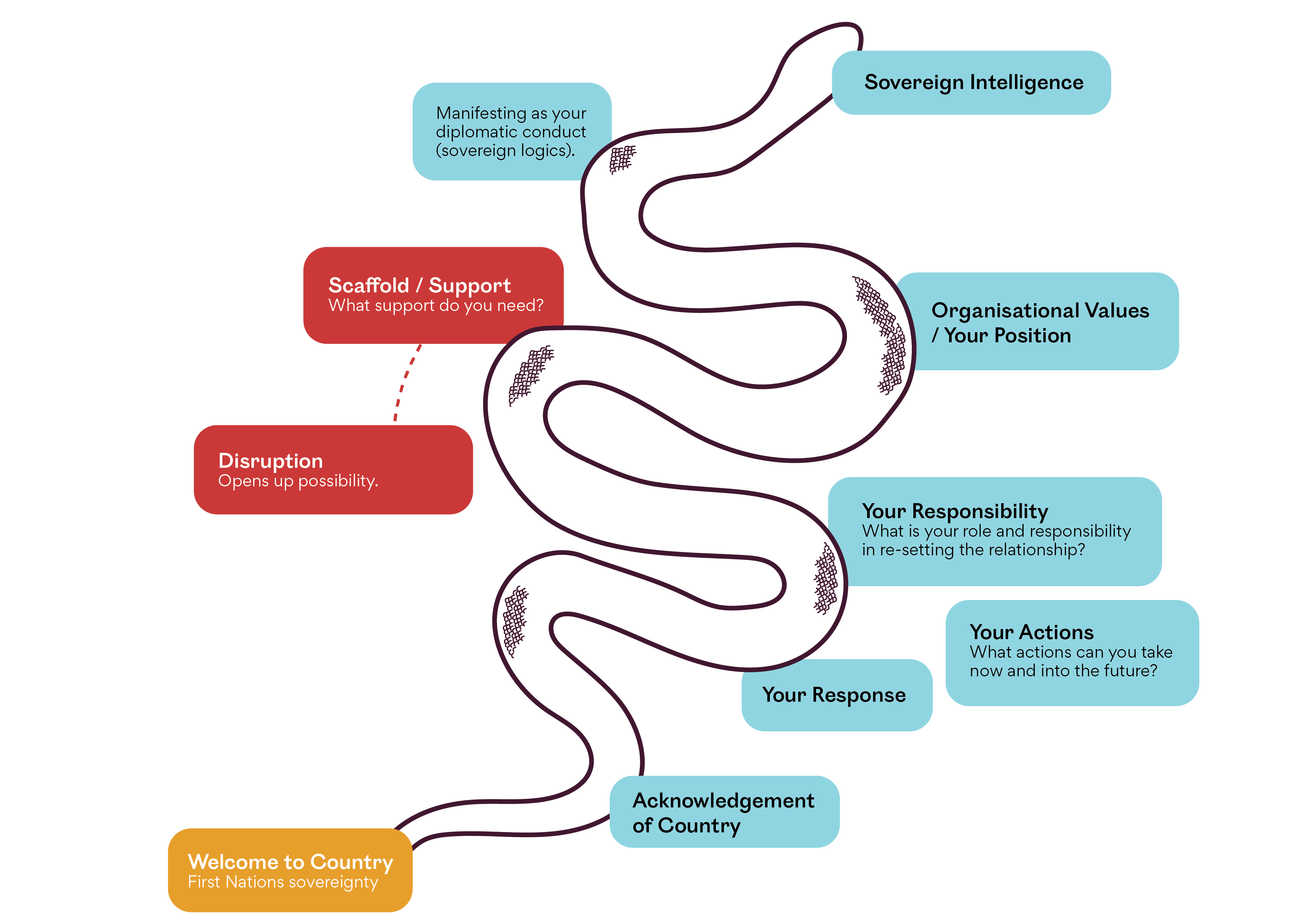 These workshops are utilizing participatory design prompts in order to guide discussion and materialize ideas. These prompts are combined with and conducted in accordance with First Nations practices of communication and experience sharing. This project will explore how these (Western design) methods respond to and are reset by First Nations knowledges and cultural safety engagement. A parallel thread of this work, based on the feedback and ideas from TOs, ACCO’s (Aboriginal Community Controlled Organisations) and First Nations participants, will be to support Melton Council into an understanding of how to respond to and engage with Aboriginal self-determination and operate within guidelines of cultural safety.